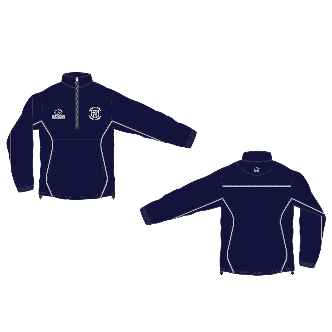 - 1/4 zip rain jacket with Rhino emblem on left chest and back neck.