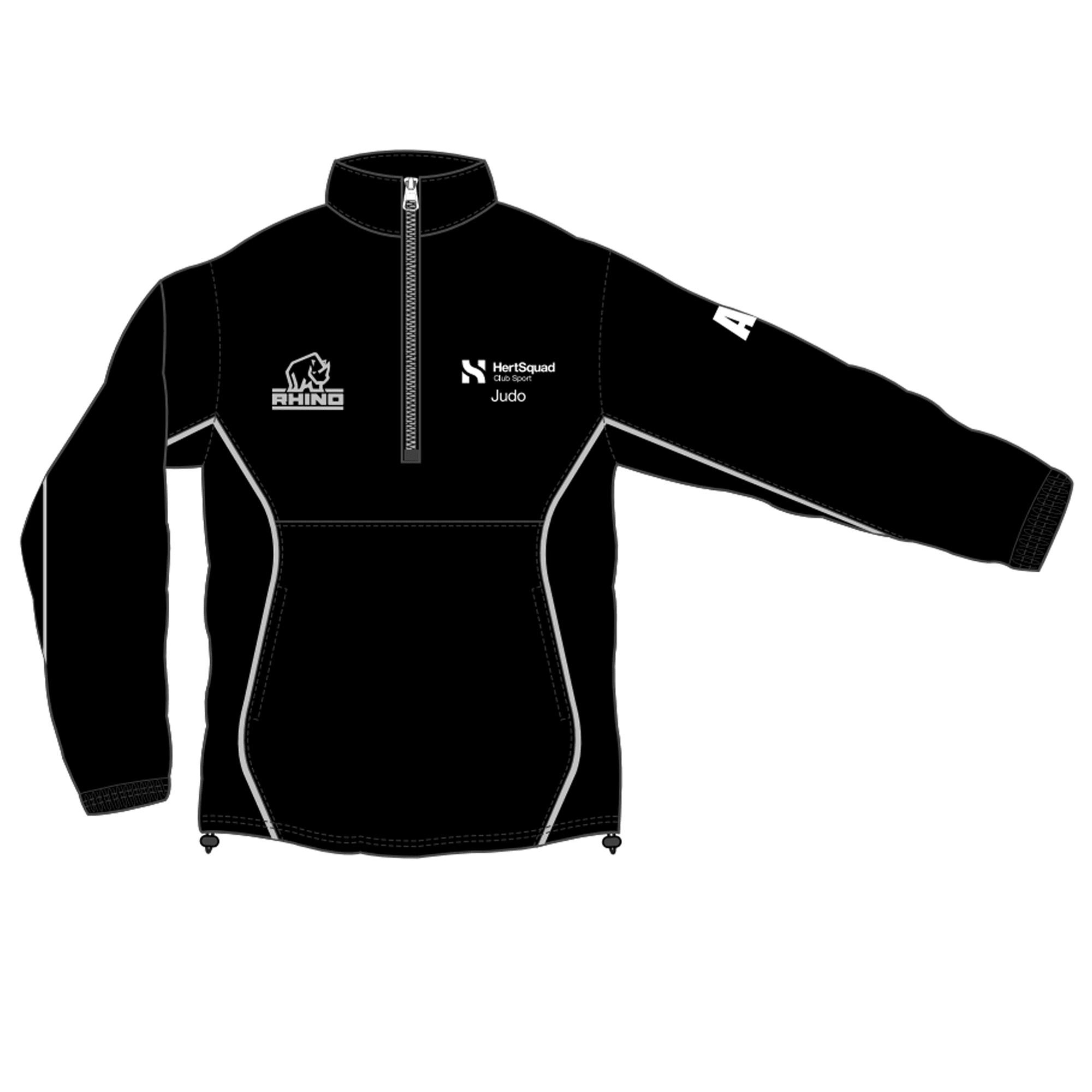 - 1/4 zip rain jacket with Rhino emblem on left chest and back neck.