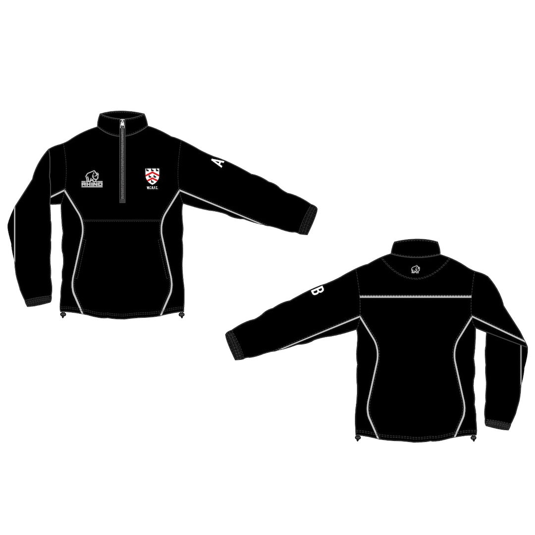 • 1/4 zip rain jacket with Rhino emblem on left chest and back neck.