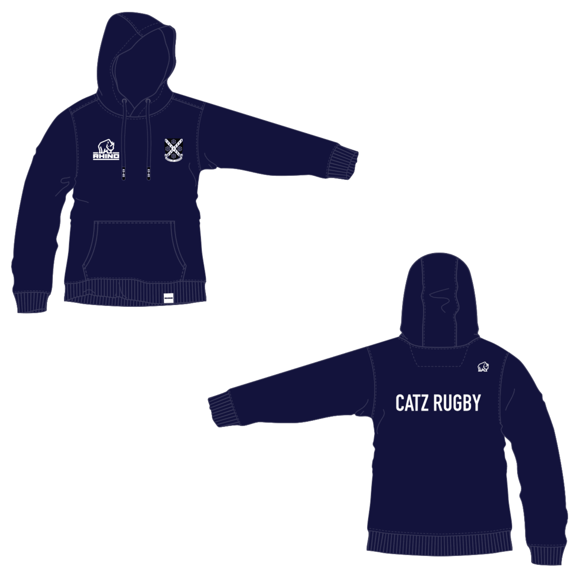 - Round drawcord with metal Rhino logo tipping